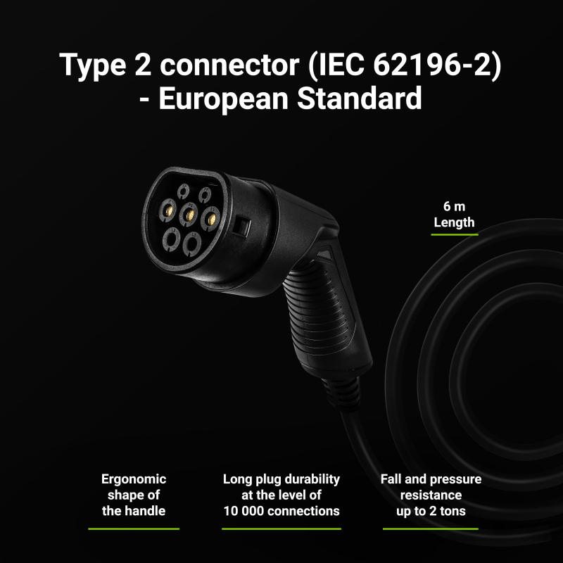 Urządzenie wykorzystuje europejski standard złącza Type 2 (IEC 62196-2), dzięki czemu jest kompatybilne z większością aut elektrycznych oraz hybryd dostępnych na rynku – od Tesli, przez VW ID.3/ID.4, po Kia EV6 i wiele innych.