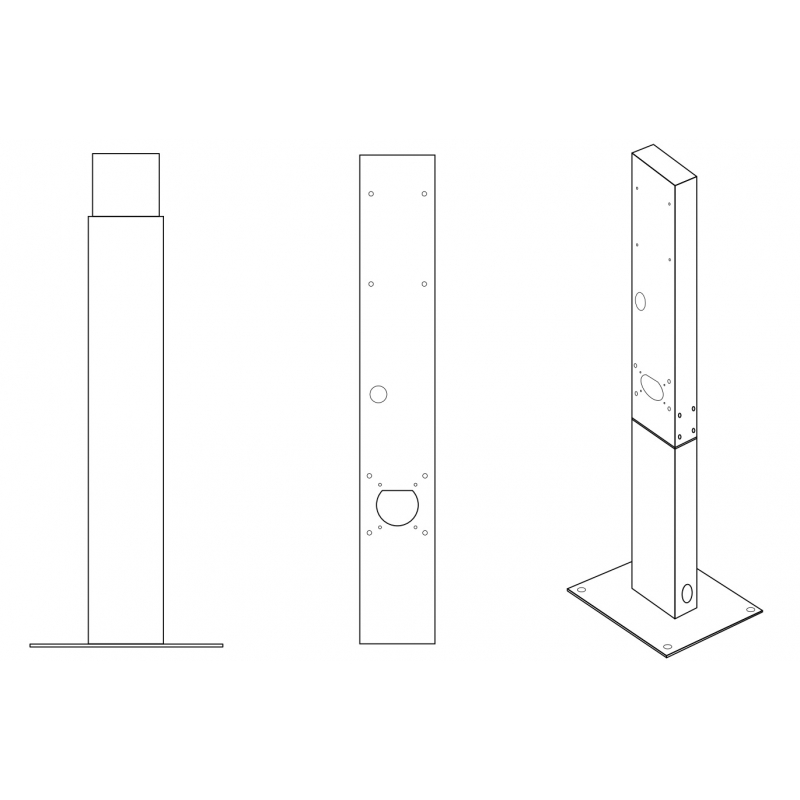 Konstrukcja słupka umożliwia prowadzenie przewodów wewnątrz obudowy, dzięki czemu instalacja wygląda estetycznie i jest lepiej zabezpieczona przed uszkodzeniami mechanicznymi oraz warunkami atmosferycznymi.